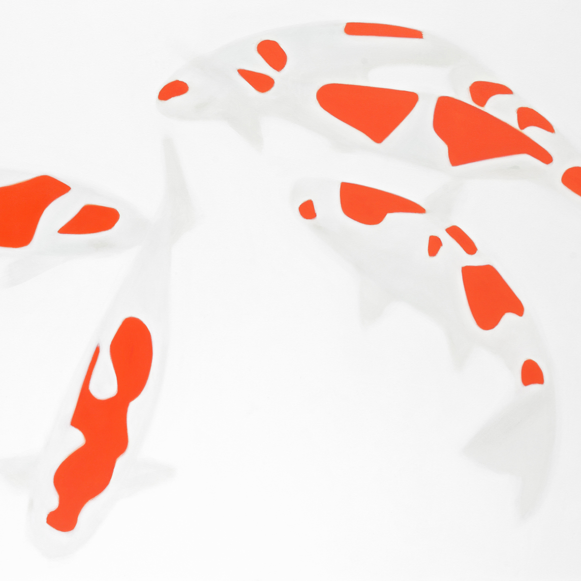 Jedes Gemälde stellt nur einen Ausschnitt aus einer Gesamtsituation dar, die in der Hängung einer Ausstellung wieder zu einem größerem Szenarium werden. Die kräftigen rot-orangen Koi-Flecken auf den Fischen oder die zarten bläulich-transpareten Körper der Quallen schaffen jene Kontraste, die unsere Wahrnehmung herausfordern und beschäftigen. Das Gefühl einer schwerelosen Bewegung überträgt sich auf den Betrachter.
